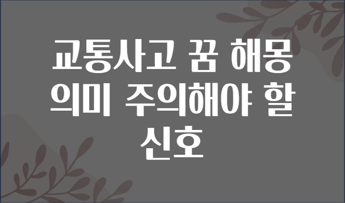 ๊ตํต์ฌ๊ณ ๋ ํ์ธ๊ณผ์ ์ถฉ๋์ ์์งํ๊ธฐ๋ ํฉ๋๋ค. ๐ค ๊ฟ์ ์ฌ๊ณ ๋ ๊ฐ๊น์ด ์ฌ๋๋ค๊ณผ์ ๊ฐ๋ฑ์ด๋ ์คํด๋ฅผ ๋ฏธ๋ฆฌ ์๋ ค์ฃผ๋ ๊ฒฝ์ฐ๊ฐ ๋ง์ผ๋ ์ฃผ์ ๊น๊ฒ ๊ด์ฐฐํด ๋ณด์ธ์. - โ