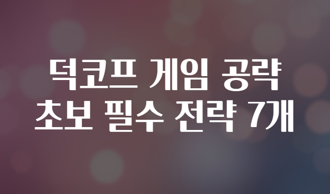 - ๐ ๋์ฝํ ๊ณต์ ์ฌ์ดํธ(์: ๋์ฝํ ๊ณต์ ํํ์ด์ง https://duckcorp.game.kr/)์์ ๊ณ ๊ธ ๊ณต๋ต ์๋ฃ๋ฅผ ํ์ธํ์ธ์.